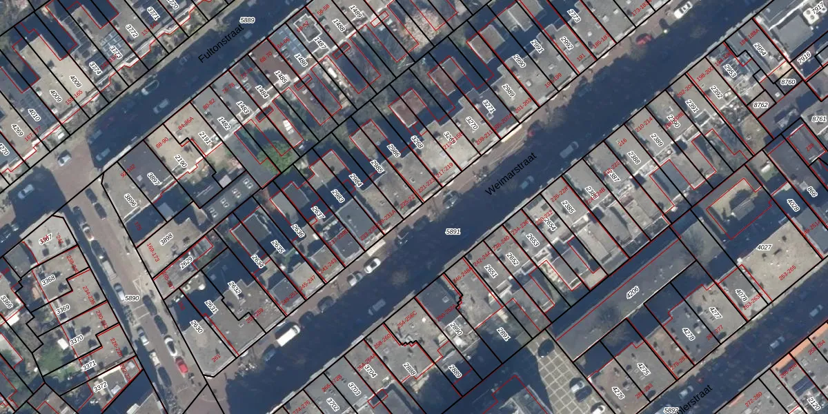 Het perceel waarop Weimarstraat 227 staat heeft een oppervlakte van 166 m². Dit is een middelgroot perceel. De perceeloppervlakte wordt geregistreerd door het Kadaster. Gedetailleerde informatie over de maten van dit perceel kunt u vinden in het rapport Kadastrale kaart met maatvoering van Weimarstraat 227.