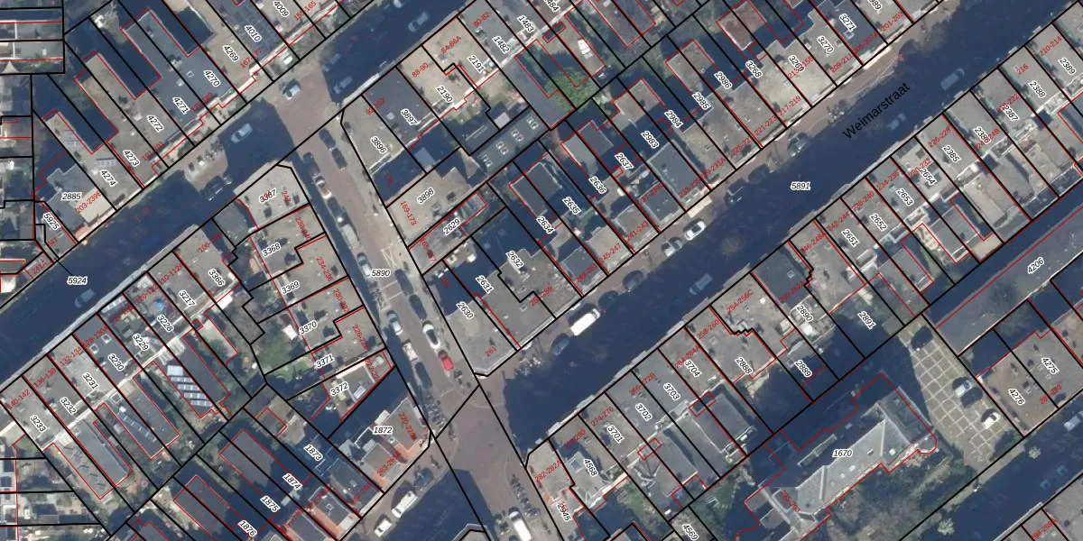 Weimarstraat 255-B is gelegen op kadastraal perceel GVH29AM2632. Deze kadastrale aanduiding is uniek en wordt gebruikt door het Kadaster om eigendomsrechten en andere zakelijke rechten vast te leggen. Het perceel maakt onderdeel uit van de kadastrale gemeente 's-Gravenhage.