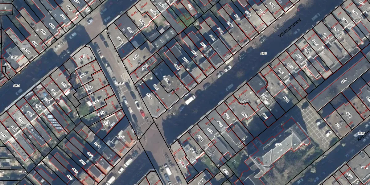 Het perceel waarop Weimarstraat 255 staat heeft een oppervlakte van 179 m². Dit is een middelgroot perceel. De perceeloppervlakte wordt geregistreerd door het Kadaster. Gedetailleerde informatie over de maten van dit perceel kunt u vinden in het rapport Kadastrale kaart met maatvoering van Weimarstraat 255.