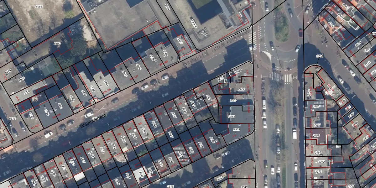 Weimarstraat 376 is gelegen op kadastraal perceel GVH29AM2421. Deze kadastrale aanduiding is uniek en wordt gebruikt door het Kadaster om eigendomsrechten en andere zakelijke rechten vast te leggen. Het perceel maakt onderdeel uit van de kadastrale gemeente 's-Gravenhage.