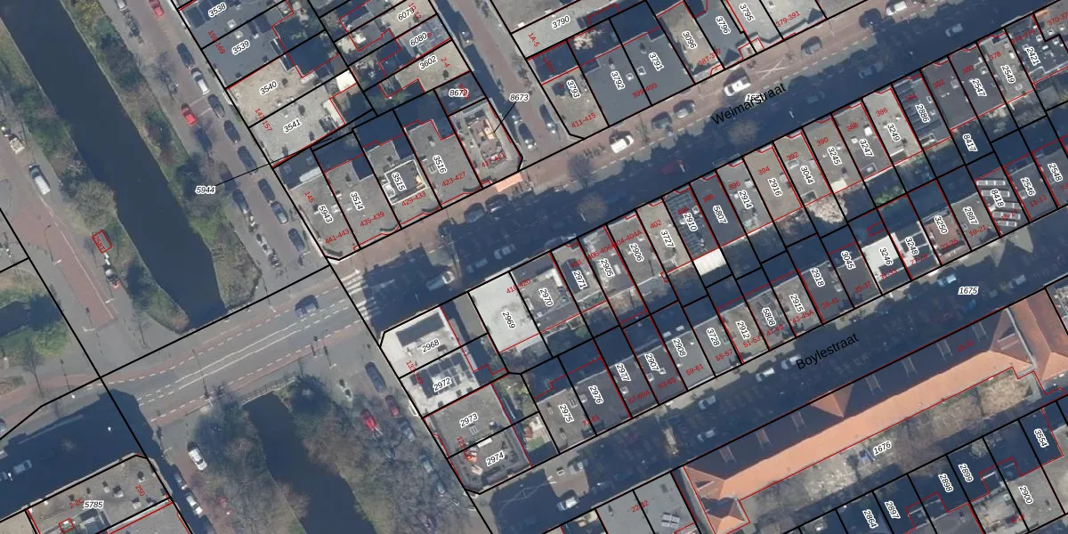 Weimarstraat 414 is gelegen op kadastraal perceel GVH29AM2970. Deze kadastrale aanduiding is uniek en wordt gebruikt door het Kadaster om eigendomsrechten en andere zakelijke rechten vast te leggen. Het perceel maakt onderdeel uit van de kadastrale gemeente 's-Gravenhage.