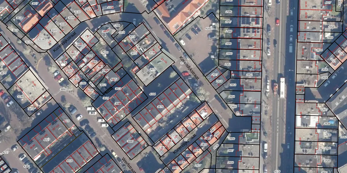 Het perceel waarop Werfstraat 126 staat heeft een oppervlakte van 714 m². Dit is een groot perceel. De perceeloppervlakte wordt geregistreerd door het Kadaster. Gedetailleerde informatie over de maten van dit perceel kunt u vinden in het rapport Kadastrale kaart met maatvoering van Werfstraat 126.
