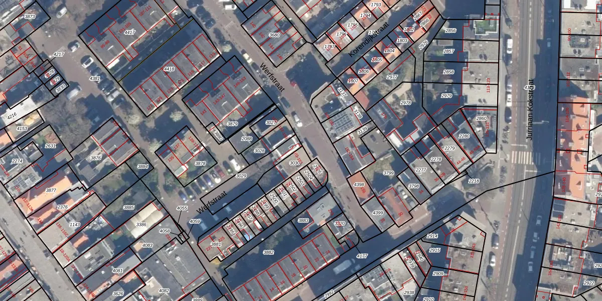 Werfstraat 183 is gelegen op kadastraal perceel GVH23AF3030. Deze kadastrale aanduiding is uniek en wordt gebruikt door het Kadaster om eigendomsrechten en andere zakelijke rechten vast te leggen. Het perceel maakt onderdeel uit van de kadastrale gemeente 's-Gravenhage.