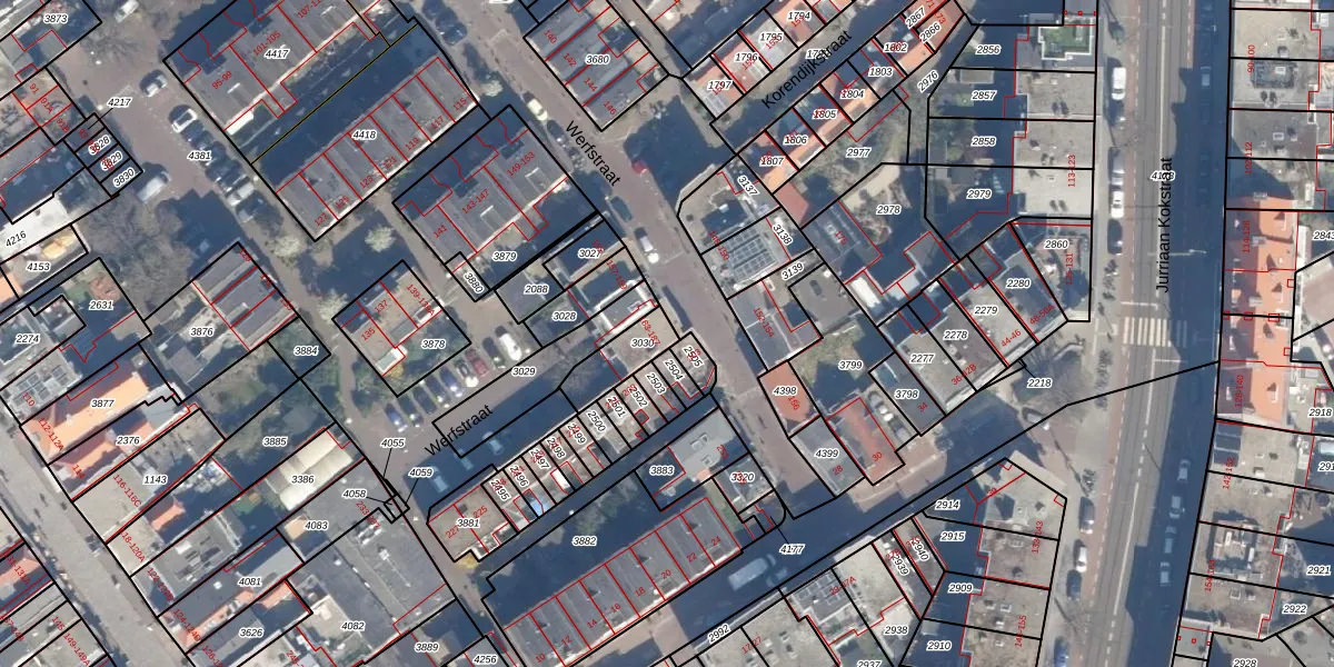 Werfstraat 185 is gelegen op kadastraal perceel GVH23AF3030. Deze kadastrale aanduiding is uniek en wordt gebruikt door het Kadaster om eigendomsrechten en andere zakelijke rechten vast te leggen. Het perceel maakt onderdeel uit van de kadastrale gemeente 's-Gravenhage.