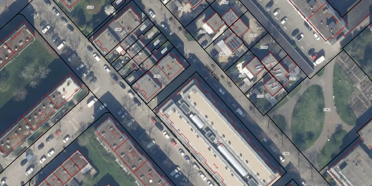 Het perceel waarop Werkzijde 103 staat heeft een oppervlakte van 2303 m². Dit is een zeer groot perceel. De perceeloppervlakte wordt geregistreerd door het Kadaster. Gedetailleerde informatie over de maten van dit perceel kunt u vinden in het rapport Kadastrale kaart met maatvoering van Werkzijde 103.