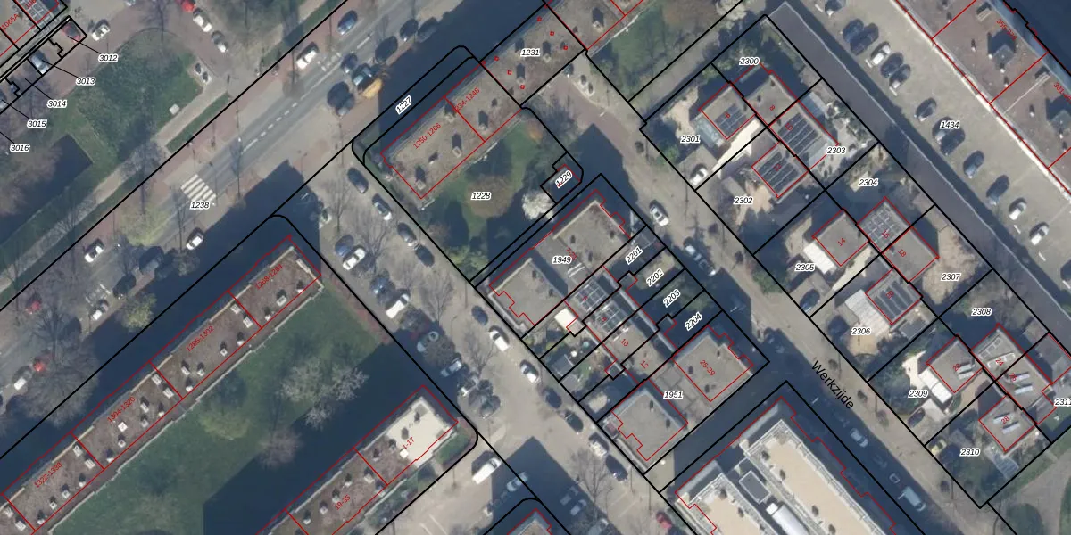 Het perceel waarop Werkzijde 13 staat heeft een oppervlakte van 403 m². Dit is een groot perceel. De perceeloppervlakte wordt geregistreerd door het Kadaster. Gedetailleerde informatie over de maten van dit perceel kunt u vinden in het rapport Kadastrale kaart met maatvoering van Werkzijde 13.