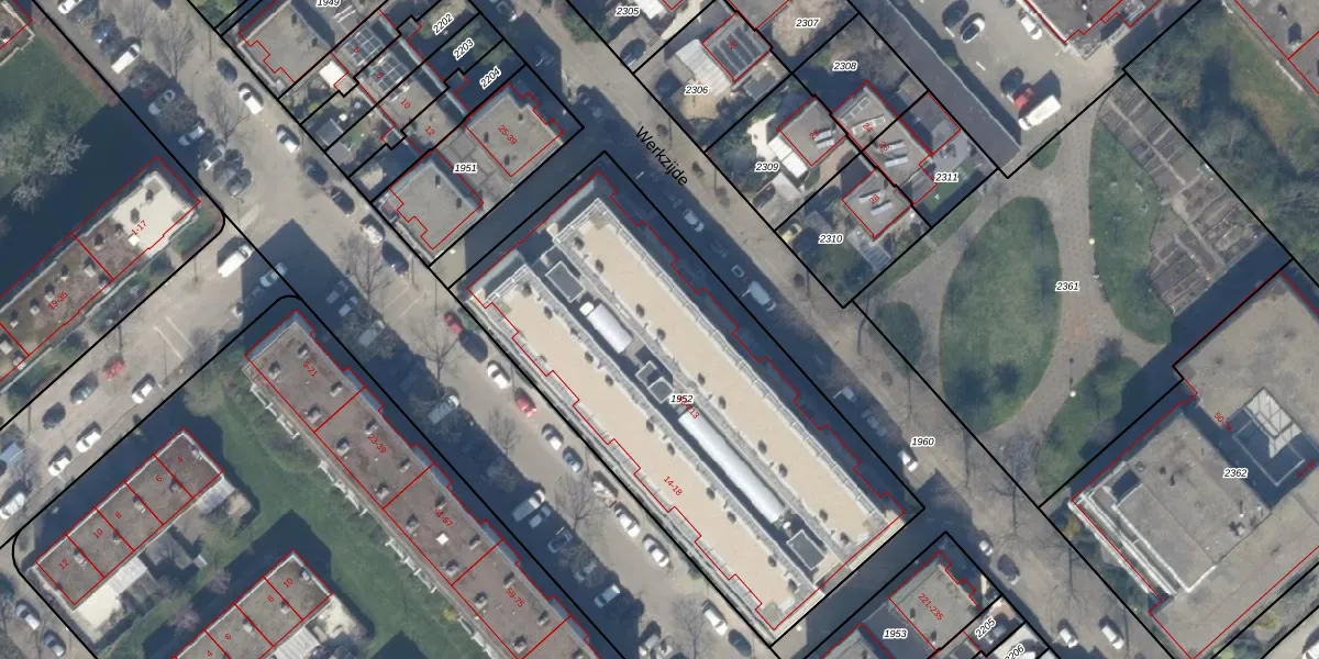 Het perceel waarop Werkzijde 201 staat heeft een oppervlakte van 2303 m². Dit is een zeer groot perceel. De perceeloppervlakte wordt geregistreerd door het Kadaster. Gedetailleerde informatie over de maten van dit perceel kunt u vinden in het rapport Kadastrale kaart met maatvoering van Werkzijde 201.