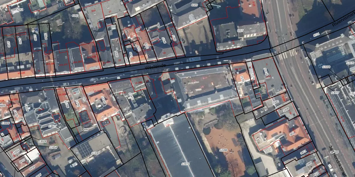 Het perceel waarop het adres ligt is GVH08-L-12288. De afkorting 'GVH08' staat voor kadastrale gemeente 's-Gravenhage. De gemiddelde perceeloppervlakte in de kadastrale gemeente 's-Gravenhage is 468,2 m². Dit perceel is met zijn 2571 m² dus groter dan gemiddeld. Het kleinste perceel in de kadastrale gemeente is 0 m² groot. De grootste perceeloppervlakte is 3,8 ha. Er zijn 54 adressen aanwezig op het perceel. De huidige grenzen van het perceel zijn digitaal in de Basisregistratie Kadaster (BRK) geregistreerd op 18-09-2003.