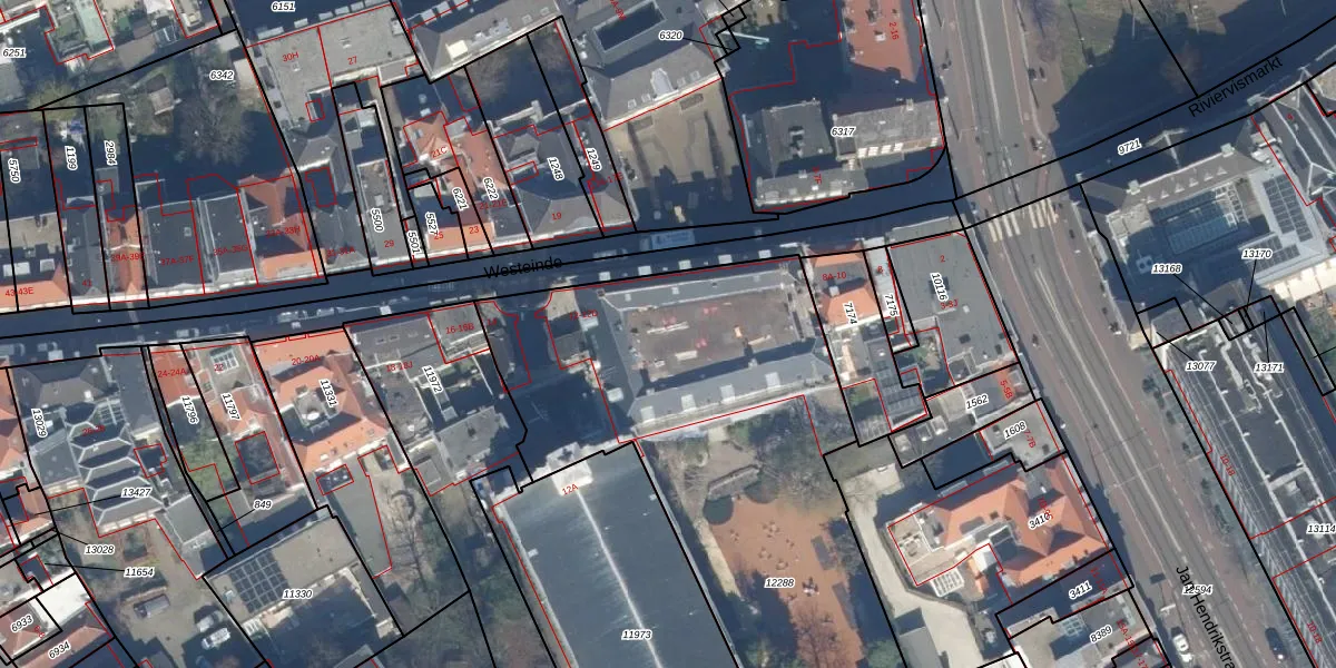 Het perceel waarop het adres ligt is GVH08-L-12288. De afkorting 'GVH08' staat voor kadastrale gemeente 's-Gravenhage. De gemiddelde perceeloppervlakte in de kadastrale gemeente 's-Gravenhage is 468,2 m². Dit perceel is met zijn 2571 m² dus groter dan gemiddeld. Het kleinste perceel in de kadastrale gemeente is 0 m² groot. De grootste perceeloppervlakte is 3,8 ha. Er zijn 54 adressen aanwezig op het perceel. De huidige grenzen van het perceel zijn digitaal in de Basisregistratie Kadaster (BRK) geregistreerd op 18-09-2003.