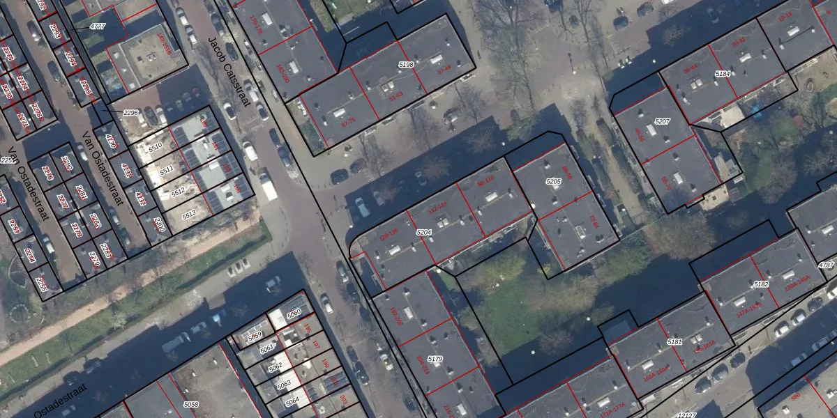 Het adres ligt op het perceel GVH22-AE-5204, dat zich in de kadastrale gemeente 's-Gravenhage bevindt. Het perceel is met 768 m² relatief groot. Het gemiddelde ligt in de kadastrale gemeente 's-Gravenhage op 493,72 m². De grootste perceeloppervlakte in de kadastrale gemeente is 9,7 ha. De kleinste oppervlakte bedraagt 1 m². Op het perceel liggen in totaal 17 adressen. De laatste wijziging in het de Basisregistratie Kadaster (BRK) was op 17-01-2005.