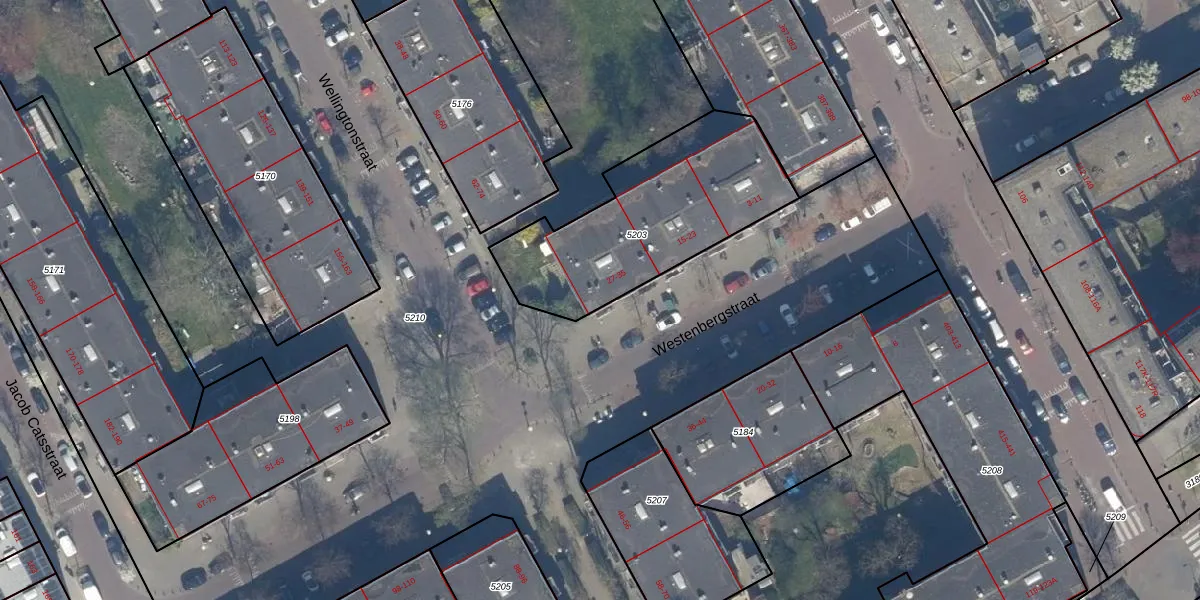 Westenbergstraat 33 is gelegen op kadastraal perceel GVH22AE5203. Deze kadastrale aanduiding is uniek en wordt gebruikt door het Kadaster om eigendomsrechten en andere zakelijke rechten vast te leggen. Het perceel maakt onderdeel uit van de kadastrale gemeente 's-Gravenhage.