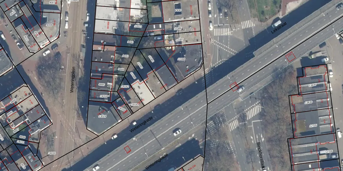 Het perceel waarop Weteringkade 128 staat heeft een oppervlakte van 215 m². Dit is een middelgroot perceel. De perceeloppervlakte wordt geregistreerd door het Kadaster. Gedetailleerde informatie over de maten van dit perceel kunt u vinden in het rapport Kadastrale kaart met maatvoering van Weteringkade 128.