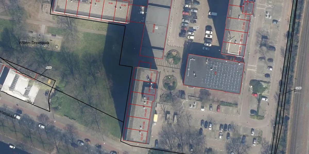 Het perceel waarop Willem Dreespark 154 staat heeft een oppervlakte van 1,4 ha. Dit is een zeer groot perceel. De perceeloppervlakte wordt geregistreerd door het Kadaster. Gedetailleerde informatie over de maten van dit perceel kunt u vinden in het rapport Kadastrale kaart met maatvoering van Willem Dreespark 154.