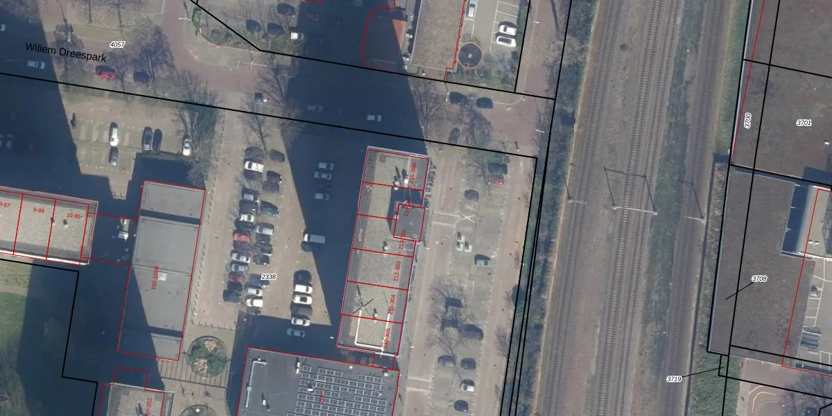 Het perceel waarop Willem Dreespark 217 staat heeft een oppervlakte van 1,4 ha. Dit is een zeer groot perceel. De perceeloppervlakte wordt geregistreerd door het Kadaster. Gedetailleerde informatie over de maten van dit perceel kunt u vinden in het rapport Kadastrale kaart met maatvoering van Willem Dreespark 217.