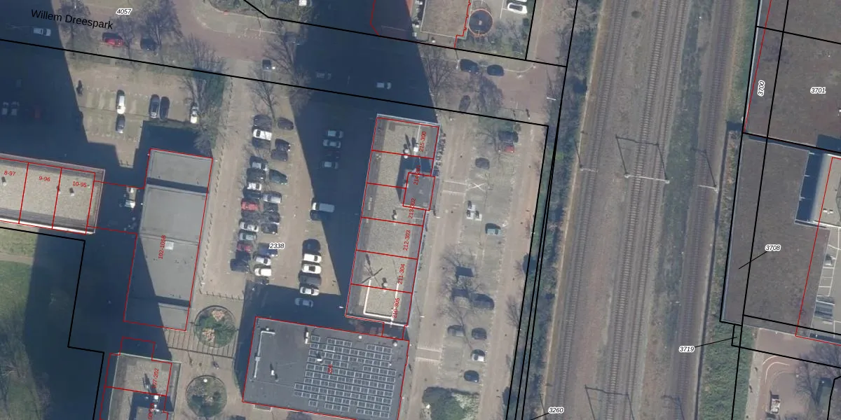 Het perceel waarop Willem Dreespark 261 staat heeft een oppervlakte van 1,4 ha. Dit is een zeer groot perceel. De perceeloppervlakte wordt geregistreerd door het Kadaster. Gedetailleerde informatie over de maten van dit perceel kunt u vinden in het rapport Kadastrale kaart met maatvoering van Willem Dreespark 261.