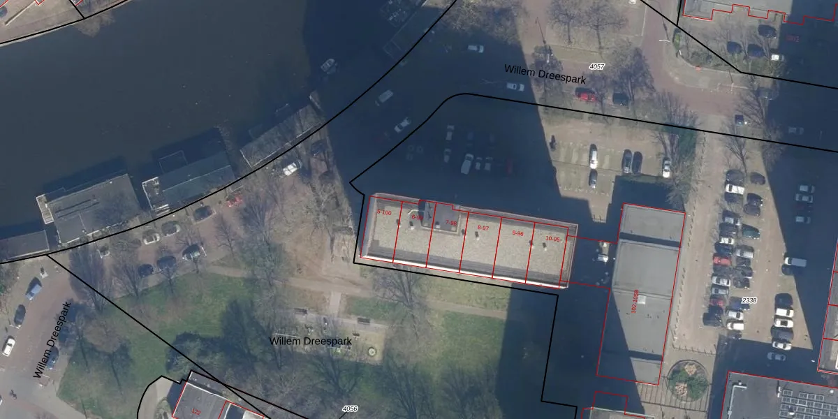 Het perceel waarop Willem Dreespark 6 staat heeft een oppervlakte van 1,4 ha. Dit is een zeer groot perceel. De perceeloppervlakte wordt geregistreerd door het Kadaster. Gedetailleerde informatie over de maten van dit perceel kunt u vinden in het rapport Kadastrale kaart met maatvoering van Willem Dreespark 6.