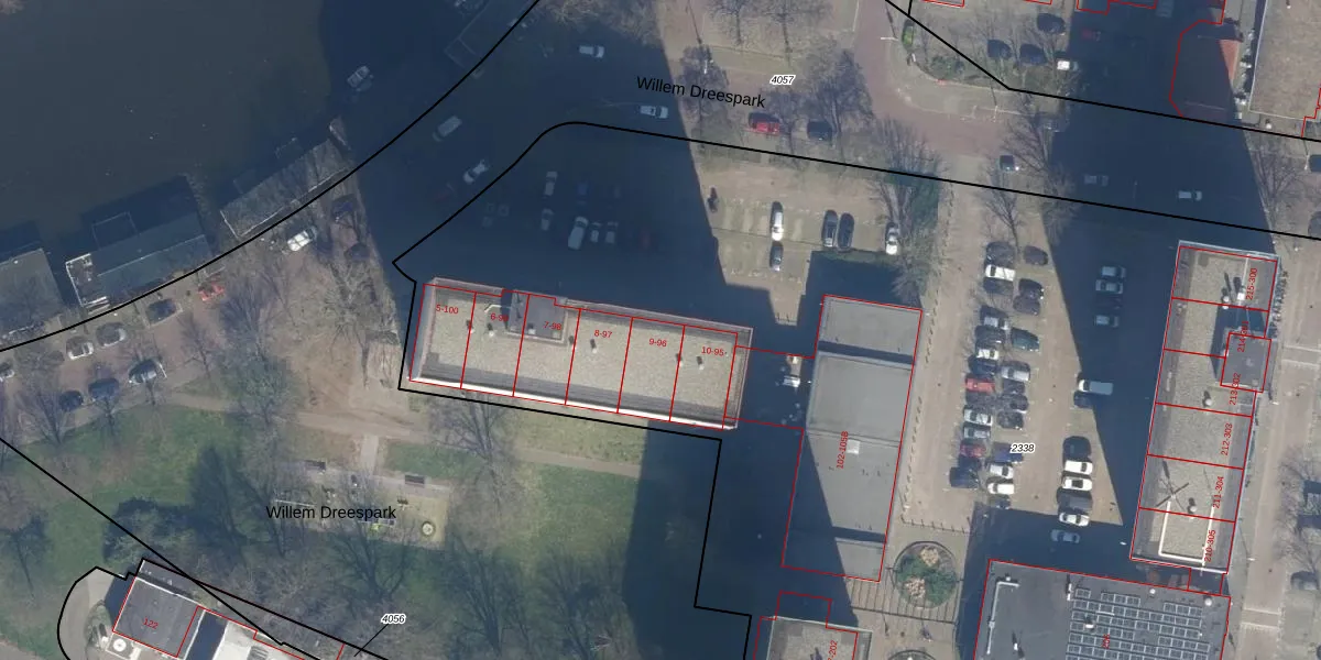 Het perceel waarop Willem Dreespark 84 staat heeft een oppervlakte van 1,4 ha. Dit is een zeer groot perceel. De perceeloppervlakte wordt geregistreerd door het Kadaster. Gedetailleerde informatie over de maten van dit perceel kunt u vinden in het rapport Kadastrale kaart met maatvoering van Willem Dreespark 84.