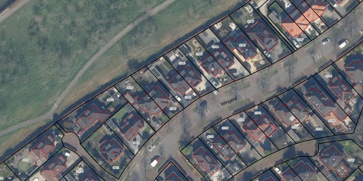 Het perceel waarop Wingerd 208 staat heeft een oppervlakte van 336 m². Dit is een groot perceel. De perceeloppervlakte wordt geregistreerd door het Kadaster. Gedetailleerde informatie over de maten van dit perceel kunt u vinden in het rapport Kadastrale kaart met maatvoering van Wingerd 208.