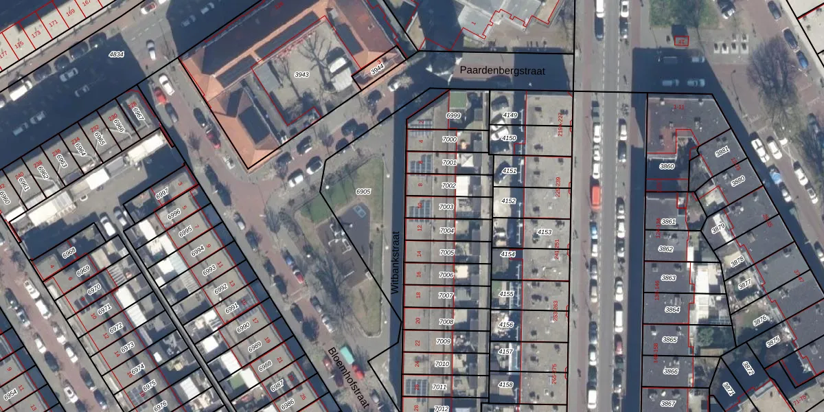Witbankstraat 10 is gelegen op kadastraal perceel GVH19AB7003. Deze kadastrale aanduiding is uniek en wordt gebruikt door het Kadaster om eigendomsrechten en andere zakelijke rechten vast te leggen. Het perceel maakt onderdeel uit van de kadastrale gemeente 's-Gravenhage.