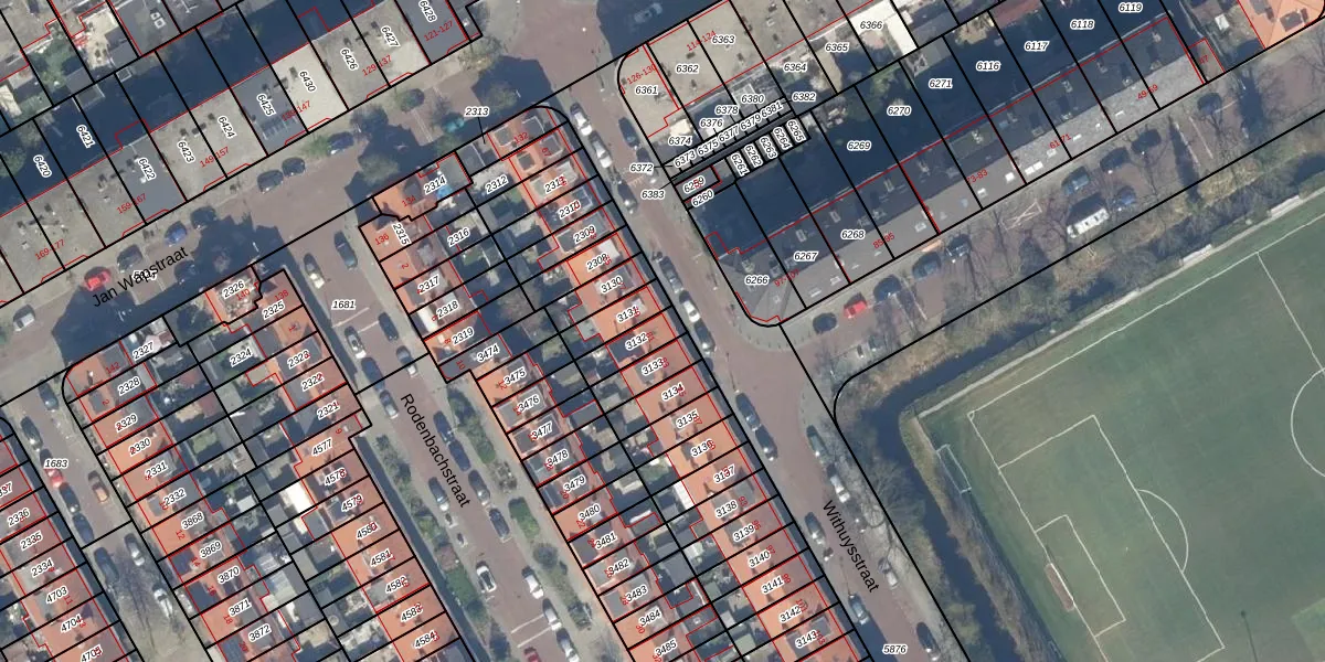 Het perceel waarop Withuysstraat 81 staat heeft een oppervlakte van 80 m². Dit is een klein perceel. De perceeloppervlakte wordt geregistreerd door het Kadaster. Gedetailleerde informatie over de maten van dit perceel kunt u vinden in het rapport Kadastrale kaart met maatvoering van Withuysstraat 81.