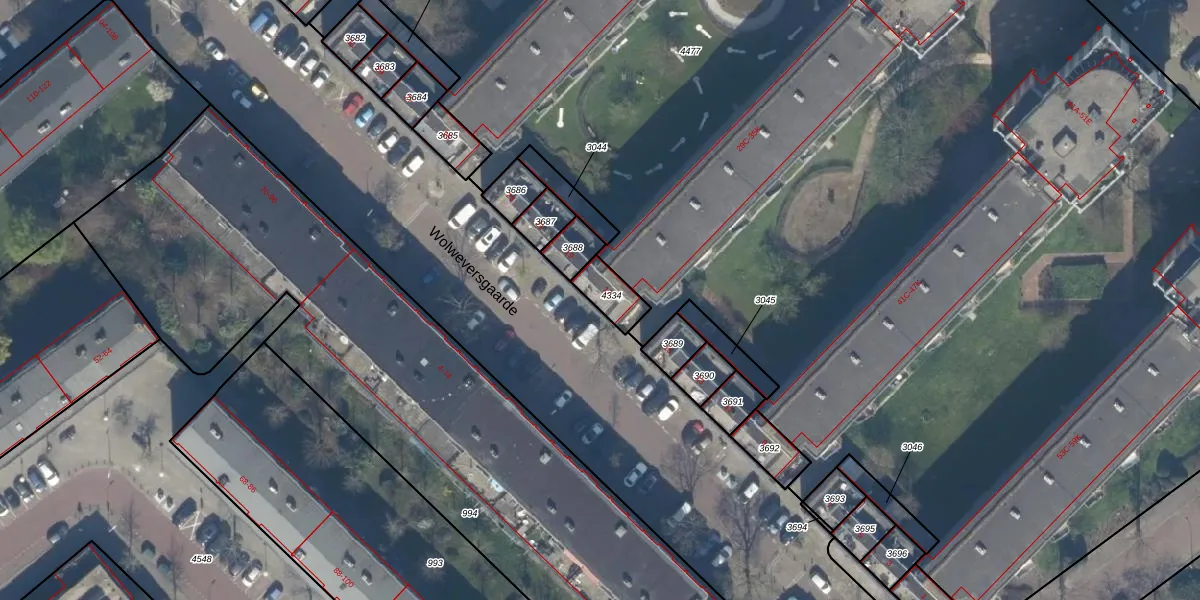 Het perceel waarop Wolweversgaarde 17 staat heeft een oppervlakte van 77 m². Dit is een klein perceel. De perceeloppervlakte wordt geregistreerd door het Kadaster. Gedetailleerde informatie over de maten van dit perceel kunt u vinden in het rapport Kadastrale kaart met maatvoering van Wolweversgaarde 17.