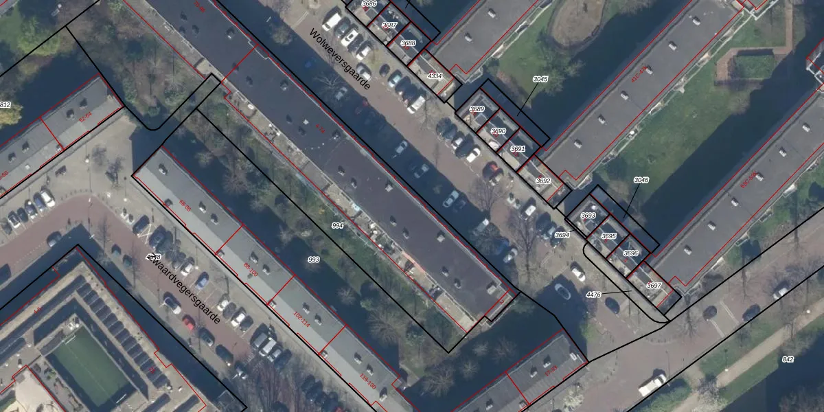 Het perceel waarop Wolweversgaarde 26 staat heeft een oppervlakte van 3022 m². Dit is een zeer groot perceel. De perceeloppervlakte wordt geregistreerd door het Kadaster. Gedetailleerde informatie over de maten van dit perceel kunt u vinden in het rapport Kadastrale kaart met maatvoering van Wolweversgaarde 26.