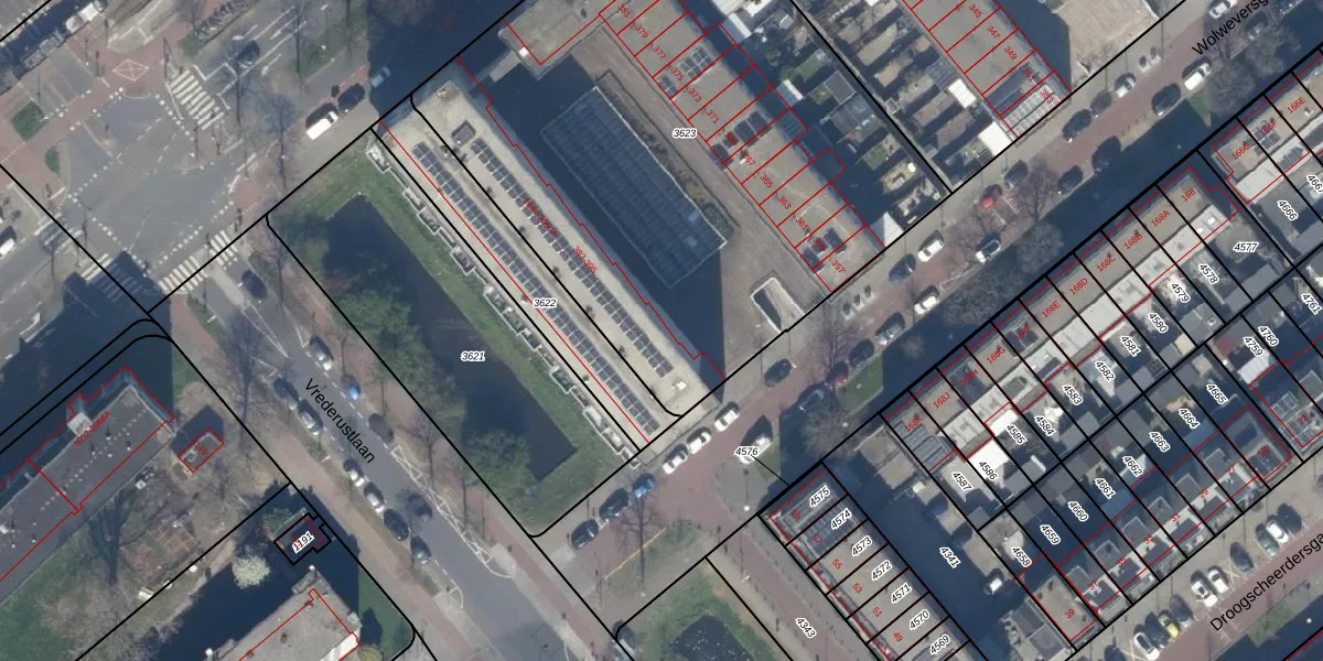 Het perceel waarop het adres ligt is GVH37-AW-3623. De afkorting 'GVH37' staat voor kadastrale gemeente 's-Gravenhage. Het perceel is met 3460 m² relatief groot. Het gemiddelde ligt in de kadastrale gemeente 's-Gravenhage op 1320,78 m². Het kleinste perceel in de kadastrale gemeente is 0 m² groot. De grootste perceeloppervlakte is 12,9 ha. Op het perceel zijn 77 adressen aanwezig. De huidige grenzen van het perceel zijn digitaal in de Basisregistratie Kadaster (BRK) geregistreerd op 23-03-2010.