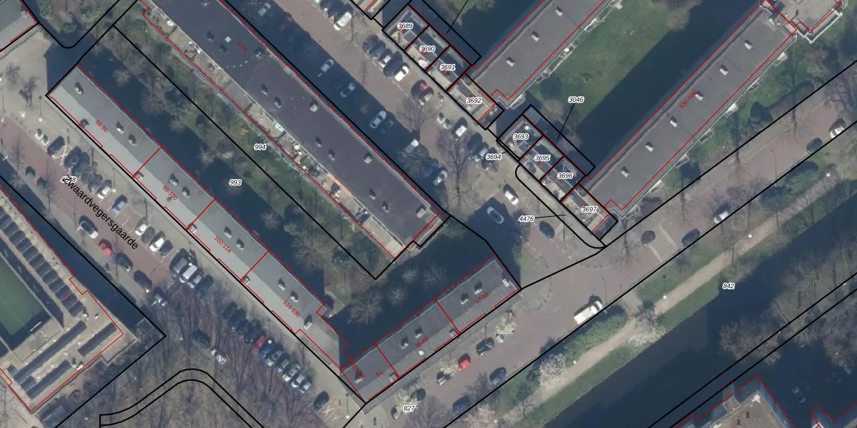 Het perceel waarop Wolweversgaarde 4 staat heeft een oppervlakte van 3022 m². Dit is een zeer groot perceel. De perceeloppervlakte wordt geregistreerd door het Kadaster. Gedetailleerde informatie over de maten van dit perceel kunt u vinden in het rapport Kadastrale kaart met maatvoering van Wolweversgaarde 4.