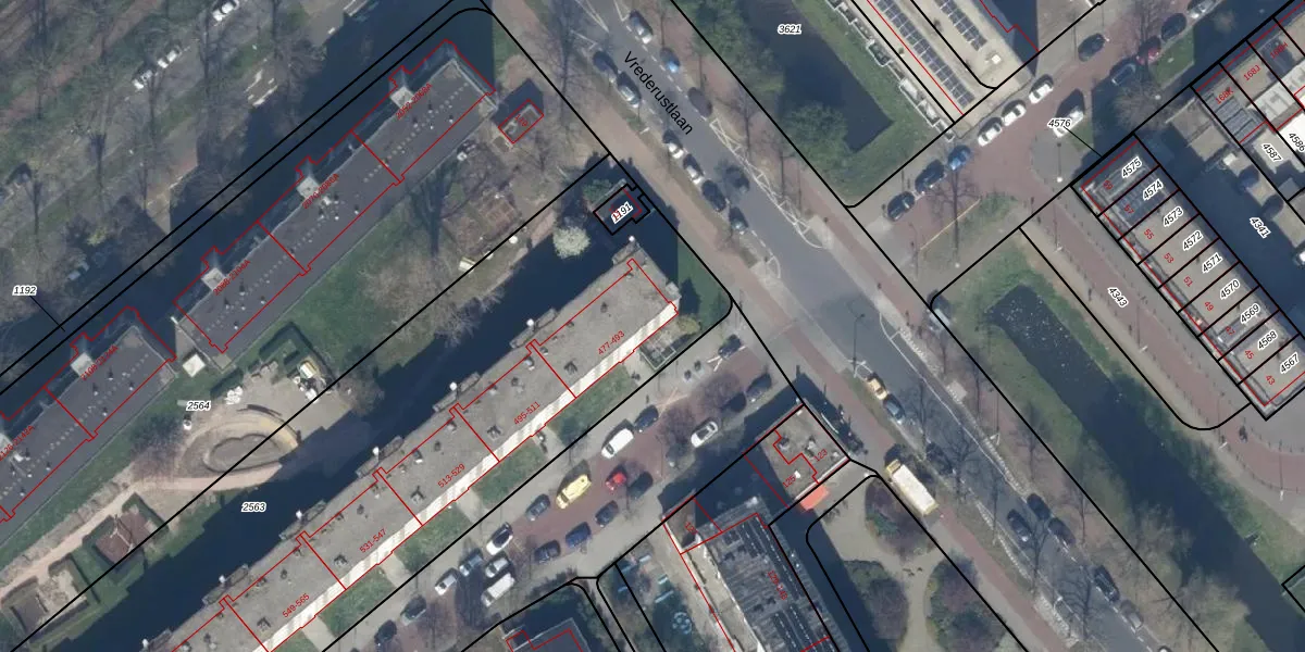 Het adres ligt op het perceel GVH37-AW-2563, dat zich in de kadastrale gemeente 's-Gravenhage bevindt. De oppervlakte van het perceel is 3762 m². Dat is groter dan gemiddeld in 's-Gravenhage, waar de gemiddelde perceeloppervlakte op 1320,78 m² ligt. Het kleinste perceel in de kadastrale gemeente is 0 m² groot. De grootste perceeloppervlakte is 12,9 ha. Op het perceel liggen in totaal 56 adressen. In de Basisregistratie Kadaster (BRK) werden de grenzen van het perceel geregistreerd op 02-06-2004.