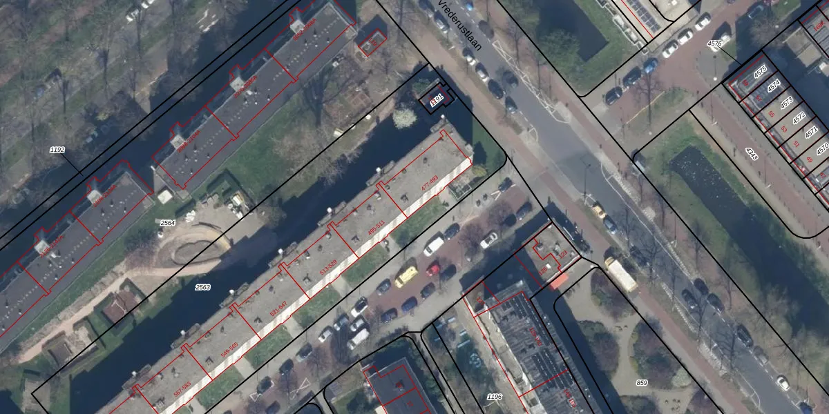 Het perceel waarop het adres ligt is GVH37-AW-2563. De afkorting 'GVH37' staat voor kadastrale gemeente 's-Gravenhage. De oppervlakte van het perceel is 3762 m². Dat is groter dan gemiddeld in 's-Gravenhage, waar de gemiddelde perceeloppervlakte op 1320,78 m² ligt. De grootste perceeloppervlakte in de kadastrale gemeente is 12,9 ha. De kleinste oppervlakte bedraagt 0 m². Op het perceel liggen in totaal 56 adressen. In de Basisregistratie Kadaster (BRK) werden de grenzen van het perceel geregistreerd op 02-06-2004.