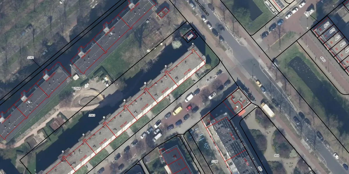 Het adres is gelegen op perceel 2563 in de sectie AW en de kadastrale gemeente 's-Gravenhage. De kadastrale aanduiding is aldus GVH37-AW-2563. Het perceel is met 3762 m² relatief groot. Het gemiddelde ligt in de kadastrale gemeente 's-Gravenhage op 1320,78 m². De grootste perceeloppervlakte in de kadastrale gemeente is 12,9 ha. De kleinste oppervlakte bedraagt 0 m². Op het perceel zijn 56 adressen aanwezig. De laatste wijziging in het de Basisregistratie Kadaster (BRK) was op 02-06-2004.