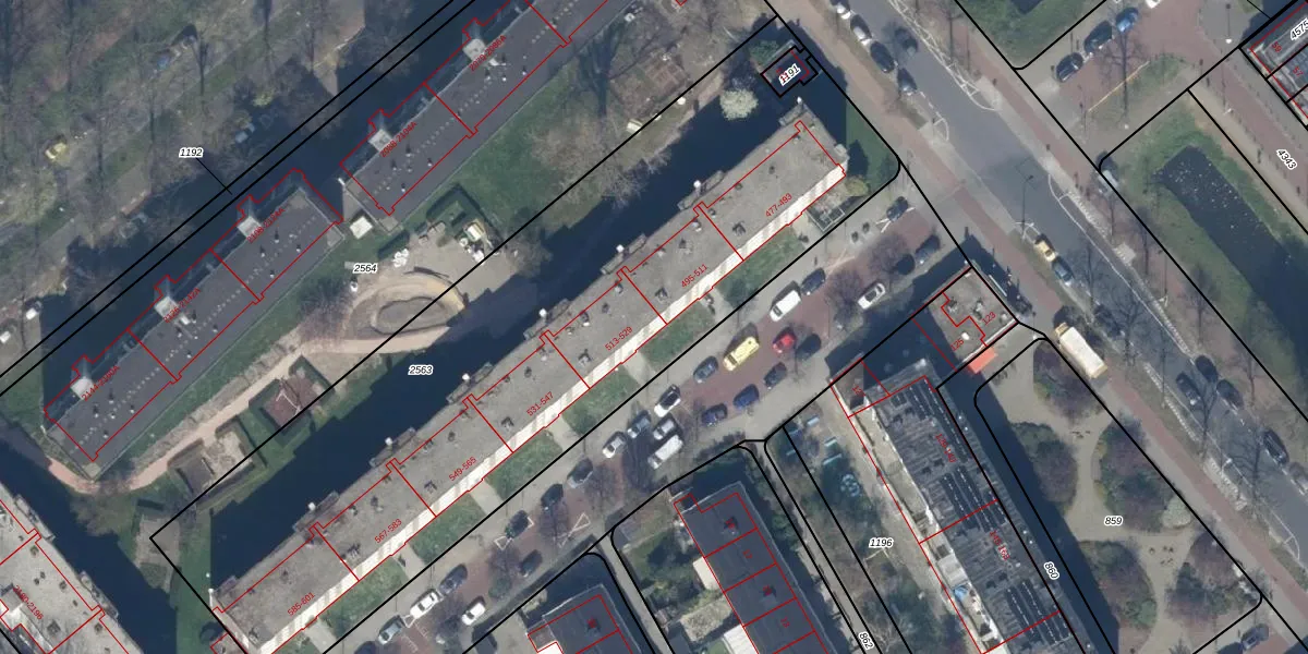 Het perceel waarop het adres ligt is GVH37-AW-2563. De afkorting 'GVH37' staat voor kadastrale gemeente 's-Gravenhage. De gemiddelde perceeloppervlakte in de kadastrale gemeente 's-Gravenhage is 1320,78 m². Dit perceel is met zijn 3762 m² dus groter dan gemiddeld. Het kleinste perceel in de kadastrale gemeente is 0 m² groot. De grootste perceeloppervlakte is 12,9 ha. Op het perceel liggen in totaal 56 adressen. De huidige grenzen van het perceel zijn digitaal in de Basisregistratie Kadaster (BRK) geregistreerd op 02-06-2004.