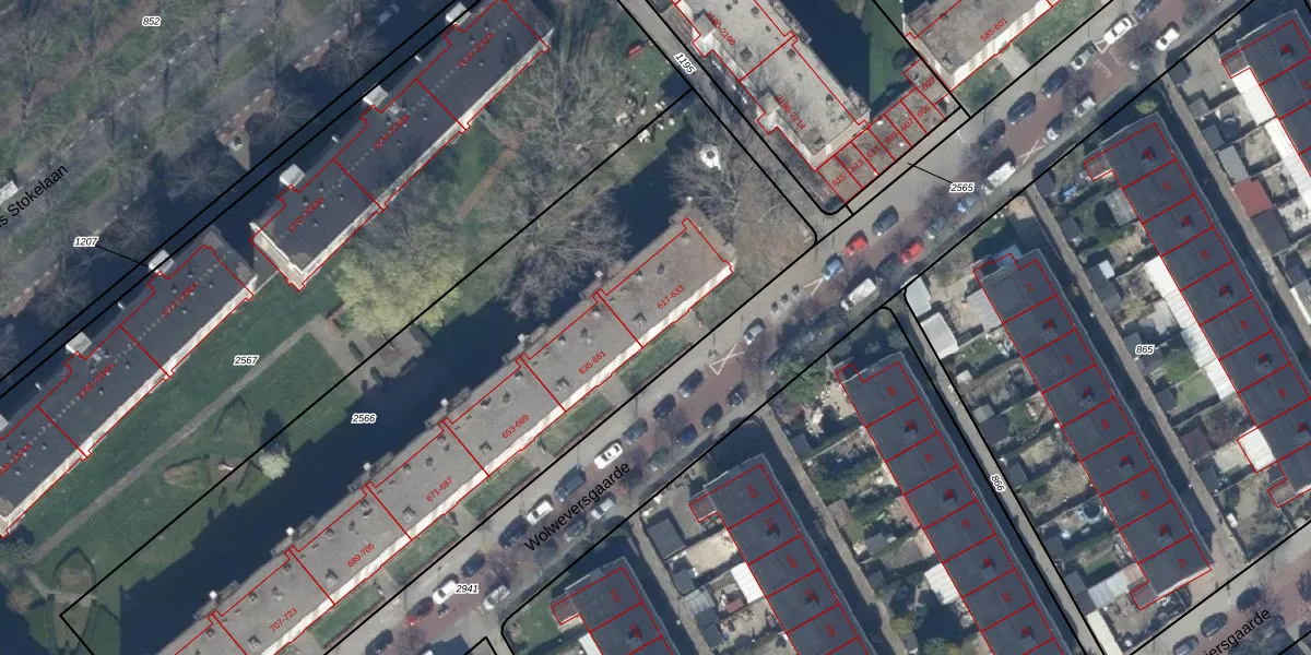 Het perceel waarop Wolweversgaarde 633 staat heeft een oppervlakte van 3841 m². Dit is een zeer groot perceel. De perceeloppervlakte wordt geregistreerd door het Kadaster. Gedetailleerde informatie over de maten van dit perceel kunt u vinden in het rapport Kadastrale kaart met maatvoering van Wolweversgaarde 633.