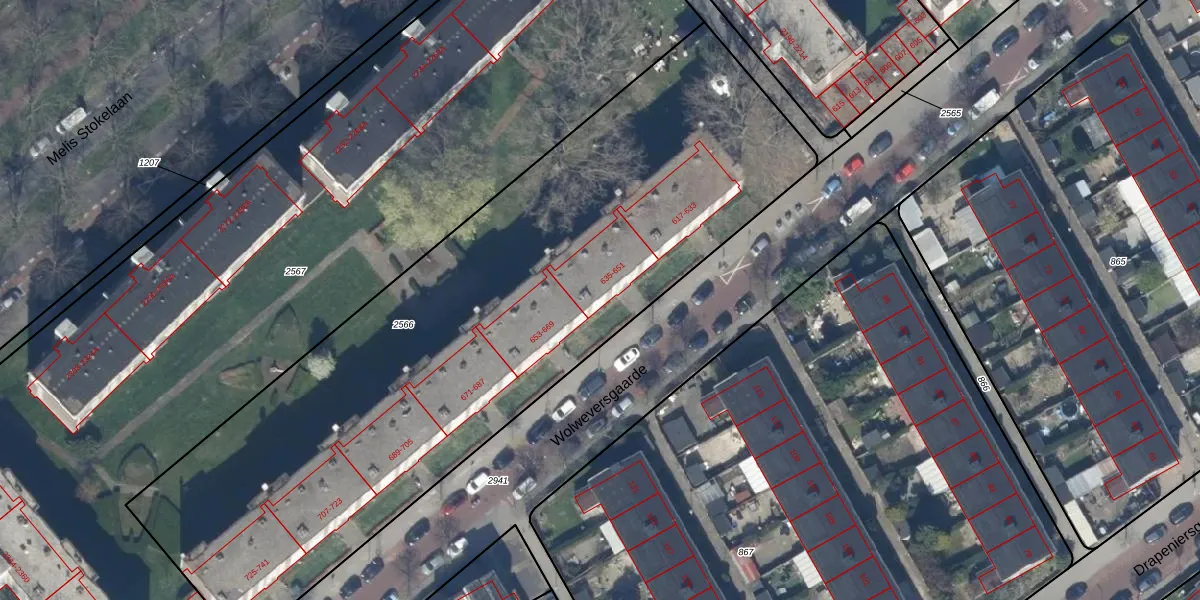Het perceel waarop Wolweversgaarde 647 staat heeft een oppervlakte van 3841 m². Dit is een zeer groot perceel. De perceeloppervlakte wordt geregistreerd door het Kadaster. Gedetailleerde informatie over de maten van dit perceel kunt u vinden in het rapport Kadastrale kaart met maatvoering van Wolweversgaarde 647.