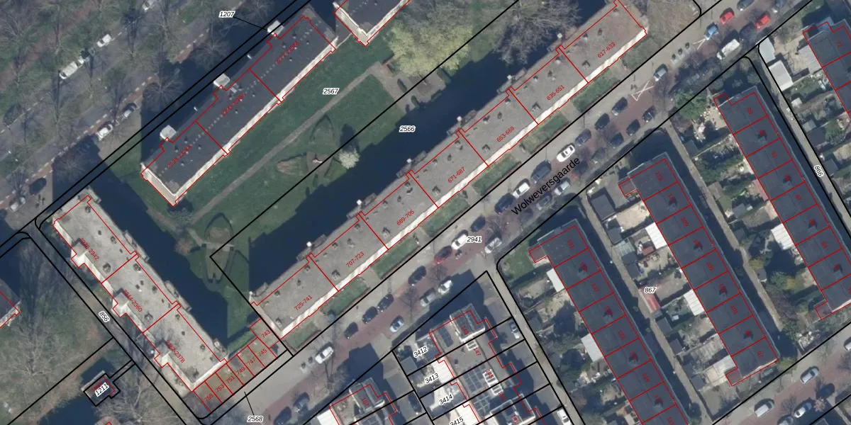 Het perceel waarop Wolweversgaarde 691 staat heeft een oppervlakte van 3841 m². Dit is een zeer groot perceel. De perceeloppervlakte wordt geregistreerd door het Kadaster. Gedetailleerde informatie over de maten van dit perceel kunt u vinden in het rapport Kadastrale kaart met maatvoering van Wolweversgaarde 691.