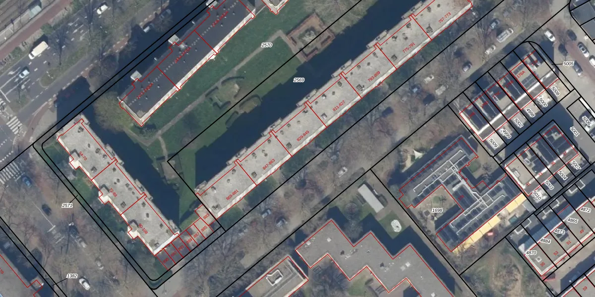 Het perceel waarop het adres ligt is GVH37-AW-2569. De afkorting 'GVH37' staat voor kadastrale gemeente 's-Gravenhage. Het perceel is met 3810 m² relatief groot. Het gemiddelde ligt in de kadastrale gemeente 's-Gravenhage op 1320,78 m². Het kleinste perceel in de kadastrale gemeente is 0 m² groot. De grootste perceeloppervlakte is 12,9 ha. Op het perceel liggen in totaal 56 adressen. De huidige grenzen van het perceel zijn digitaal in de Basisregistratie Kadaster (BRK) geregistreerd op 02-06-2004.