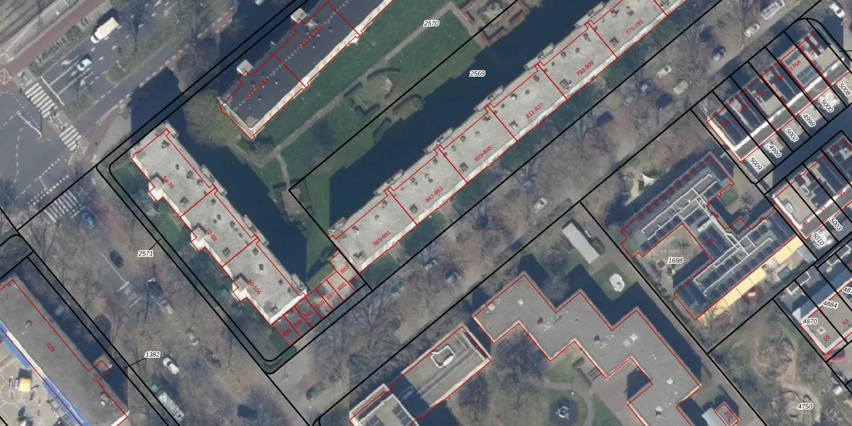 Het perceel waarop het adres ligt is GVH37-AW-2569. De afkorting 'GVH37' staat voor kadastrale gemeente 's-Gravenhage. De oppervlakte van het perceel is 3810 m². Dat is groter dan gemiddeld in 's-Gravenhage, waar de gemiddelde perceeloppervlakte op 1320,78 m² ligt. Het grootste perceel in de kadastrale gemeente is 12,9 ha. Het kleinste perceel heeft een oppervlakte van 0 m². Op het perceel zijn 56 adressen aanwezig. In de Basisregistratie Kadaster (BRK) werden de grenzen van het perceel geregistreerd op 02-06-2004.