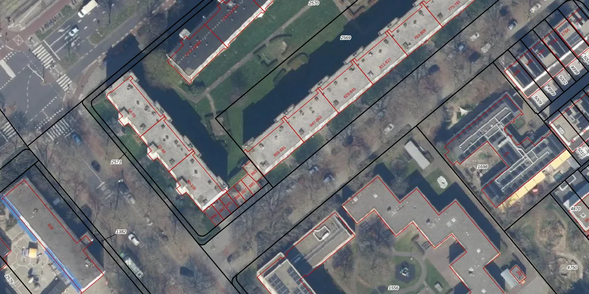 Het perceel waarop het adres ligt is GVH37-AW-2569. De afkorting 'GVH37' staat voor kadastrale gemeente 's-Gravenhage. De oppervlakte van het perceel is 3810 m². Dat is groter dan gemiddeld in 's-Gravenhage, waar de gemiddelde perceeloppervlakte op 1320,78 m² ligt. De grootste perceeloppervlakte in de kadastrale gemeente is 12,9 ha. De kleinste oppervlakte bedraagt 0 m². Op het perceel liggen in totaal 56 adressen. In de Basisregistratie Kadaster (BRK) werden de grenzen van het perceel geregistreerd op 02-06-2004.