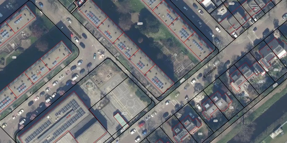 Het perceel waarop Woonstede 72 staat heeft een oppervlakte van 6085 m². Dit is een zeer groot perceel. De perceeloppervlakte wordt geregistreerd door het Kadaster. Gedetailleerde informatie over de maten van dit perceel kunt u vinden in het rapport Kadastrale kaart met maatvoering van Woonstede 72.