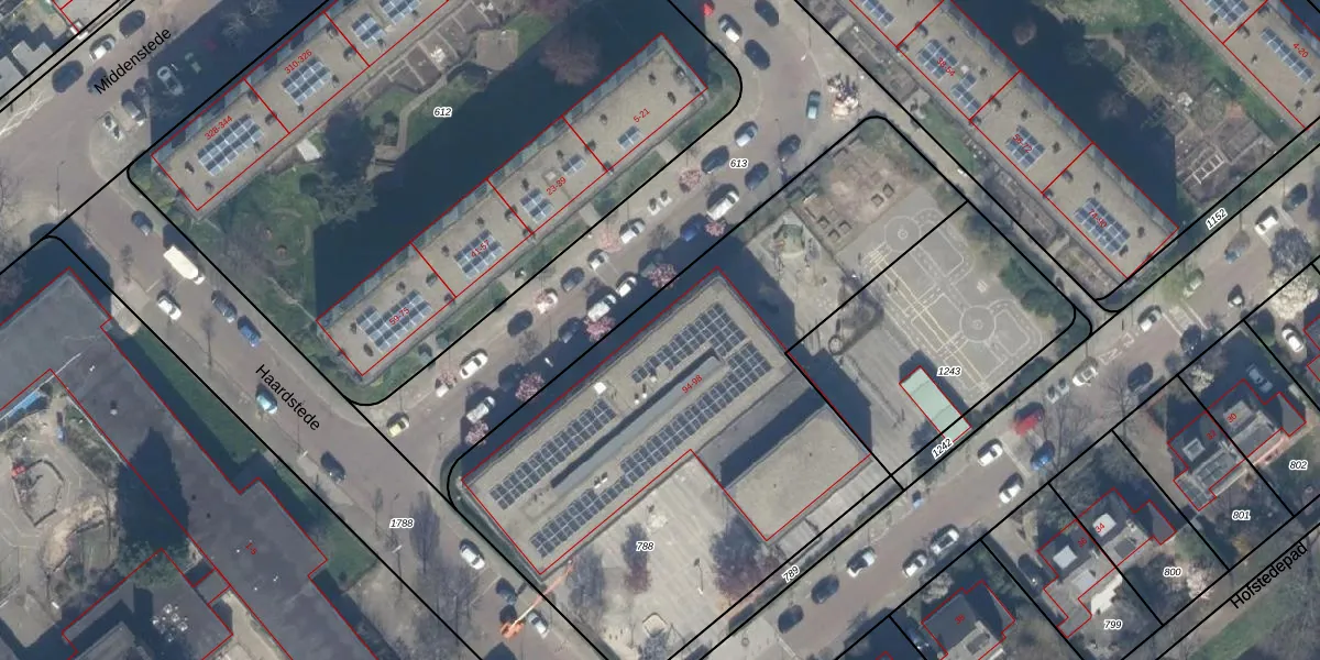 Het perceel waarop Woonstede 96 staat heeft een oppervlakte van 2972 m². Dit is een zeer groot perceel. De perceeloppervlakte wordt geregistreerd door het Kadaster. Gedetailleerde informatie over de maten van dit perceel kunt u vinden in het rapport Kadastrale kaart met maatvoering van Woonstede 96.