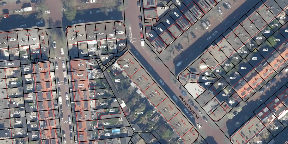Woudenbergstraat 157 is gelegen op kadastraal perceel LDN03N2120. Deze kadastrale aanduiding is uniek en wordt gebruikt door het Kadaster om eigendomsrechten en andere zakelijke rechten vast te leggen. Het perceel maakt onderdeel uit van de kadastrale gemeente Loosduinen.