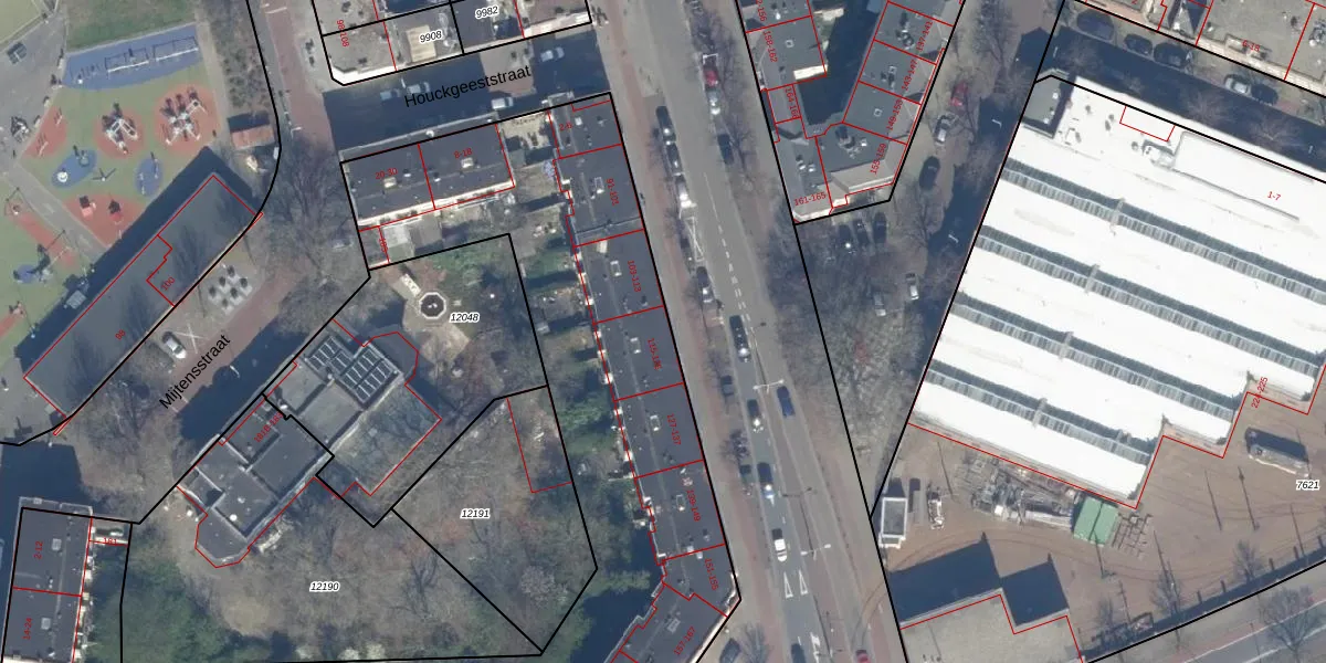 Het perceel waarop het adres ligt is GVH08-L-9734. De afkorting 'GVH08' staat voor kadastrale gemeente 's-Gravenhage. Het perceel is met 4539 m² relatief groot. Het gemiddelde ligt in de kadastrale gemeente 's-Gravenhage op 468,2 m². Het kleinste perceel in de kadastrale gemeente is 0 m² groot. De grootste perceeloppervlakte is 3,8 ha. Op het perceel liggen in totaal 116 adressen. In de Basisregistratie Kadaster (BRK) werden de grenzen van het perceel geregistreerd op 31-10-2007.