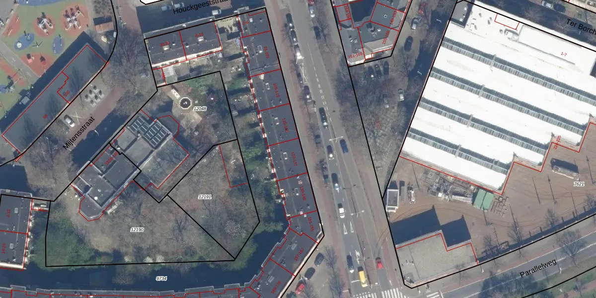Het adres ligt op het perceel GVH08-L-9734, dat zich in de kadastrale gemeente 's-Gravenhage bevindt. De oppervlakte van het perceel is 4539 m². Dat is groter dan gemiddeld in 's-Gravenhage, waar de gemiddelde perceeloppervlakte op 468,2 m² ligt. Het grootste perceel in de kadastrale gemeente is 3,8 ha. Het kleinste perceel heeft een oppervlakte van 0 m². Op het perceel liggen in totaal 116 adressen. De huidige grenzen van het perceel zijn digitaal in de Basisregistratie Kadaster (BRK) geregistreerd op 31-10-2007.