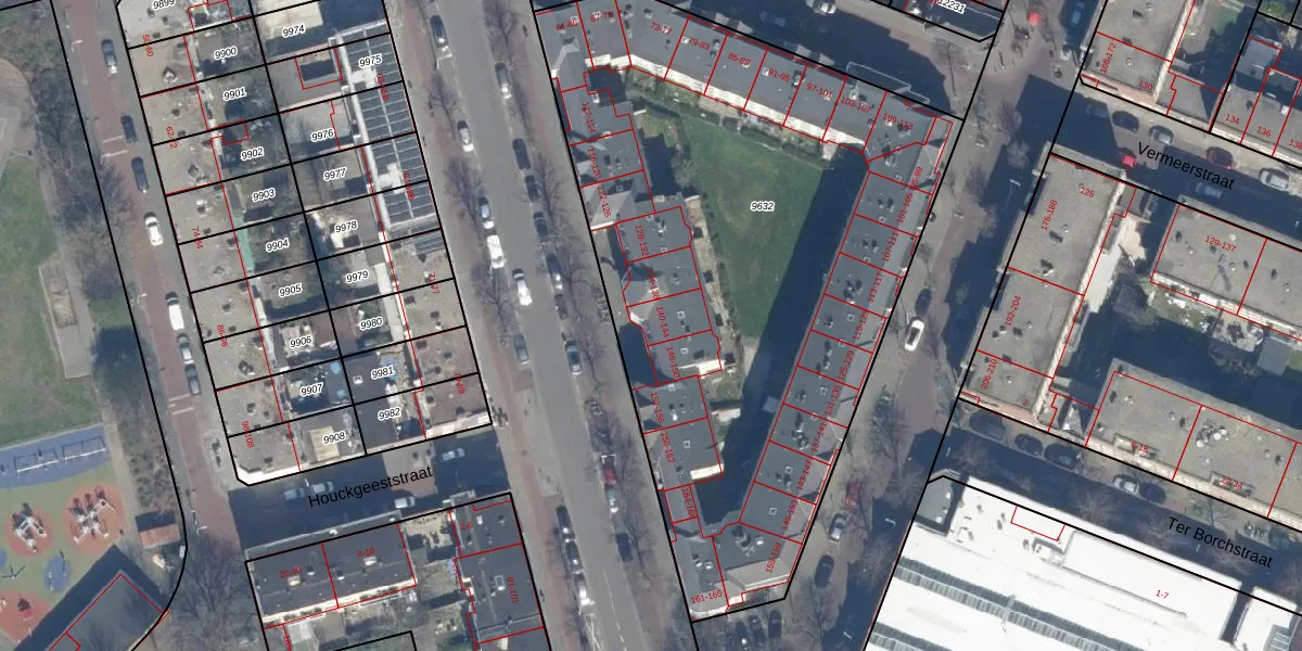 Het perceel waarop het adres ligt is GVH08-L-9632. De afkorting 'GVH08' staat voor kadastrale gemeente 's-Gravenhage. De oppervlakte van het perceel is 3613 m². Dat is groter dan gemiddeld in 's-Gravenhage, waar de gemiddelde perceeloppervlakte op 468,2 m² ligt. De grootste perceeloppervlakte in de kadastrale gemeente is 3,8 ha. De kleinste oppervlakte bedraagt 0 m². Er zijn 91 adressen aanwezig op het perceel. De laatste wijziging in het de Basisregistratie Kadaster (BRK) was op 31-10-2007.