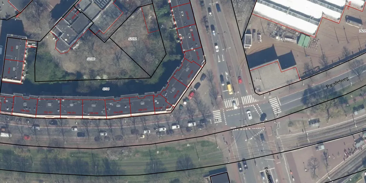 Het adres is gelegen op perceel 9734 in de sectie L en de kadastrale gemeente 's-Gravenhage. De kadastrale aanduiding is aldus GVH08-L-9734. Het perceel is met 4539 m² relatief groot. Het gemiddelde ligt in de kadastrale gemeente 's-Gravenhage op 468,2 m². Het kleinste perceel in de kadastrale gemeente is 0 m² groot. De grootste perceeloppervlakte is 3,8 ha. Op het perceel zijn 116 adressen aanwezig. De huidige grenzen van het perceel zijn digitaal in de Basisregistratie Kadaster (BRK) geregistreerd op 31-10-2007.
