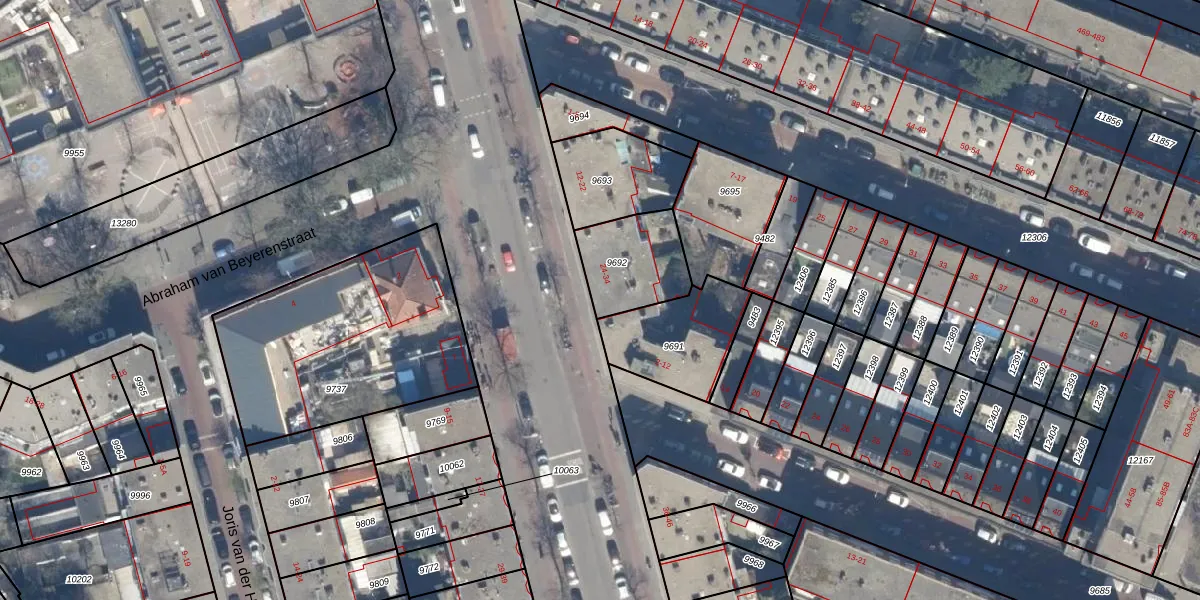 Het perceel waarop het adres ligt is GVH08-L-9692. De afkorting 'GVH08' staat voor kadastrale gemeente 's-Gravenhage. De gemiddelde perceelgrootte in 's-Gravenhage is 468,2 m². Dit perceel is kleiner: de perceeloppervlakte bedraagt 259 m². Het kleinste perceel in de kadastrale gemeente is 0 m² groot. De grootste perceeloppervlakte is 3,8 ha. Op het perceel liggen in totaal 6 adressen. De huidige grenzen van het perceel zijn digitaal in de Basisregistratie Kadaster (BRK) geregistreerd op 31-10-2007.