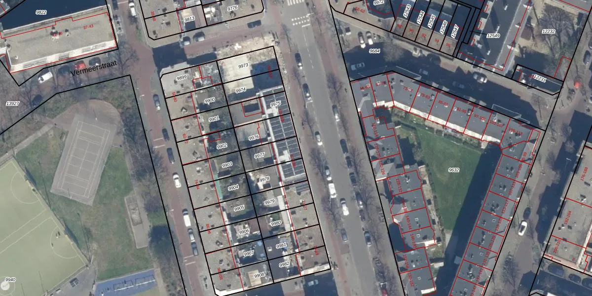 Het adres is gelegen op perceel 9977 in de sectie L en de kadastrale gemeente 's-Gravenhage. De kadastrale aanduiding is aldus GVH08-L-9977. De gemiddelde perceelgrootte in 's-Gravenhage is 468,2 m². Dit perceel is kleiner: de perceeloppervlakte bedraagt 156 m². Het grootste perceel in de kadastrale gemeente is 3,8 ha. Het kleinste perceel heeft een oppervlakte van 0 m². Er zijn 3 adressen aanwezig op het perceel. De huidige grenzen van het perceel zijn digitaal in de Basisregistratie Kadaster (BRK) geregistreerd op 31-10-2007.
