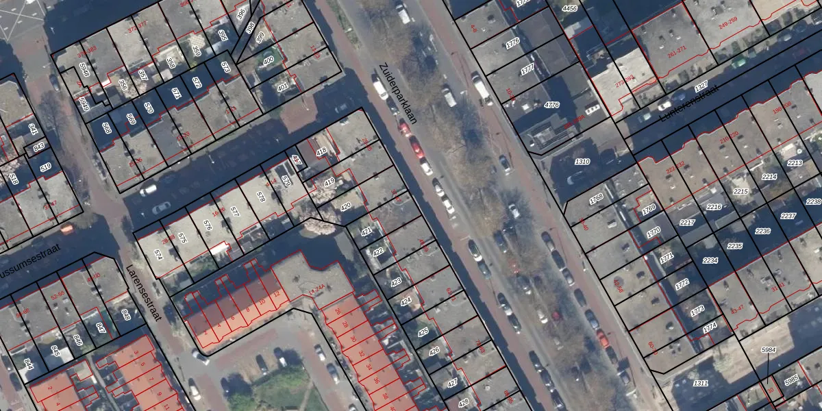 Zuiderparklaan 39 is gelegen op kadastraal perceel GVH28AL421. Deze kadastrale aanduiding is uniek en wordt gebruikt door het Kadaster om eigendomsrechten en andere zakelijke rechten vast te leggen. Het perceel maakt onderdeel uit van de kadastrale gemeente 's-Gravenhage.