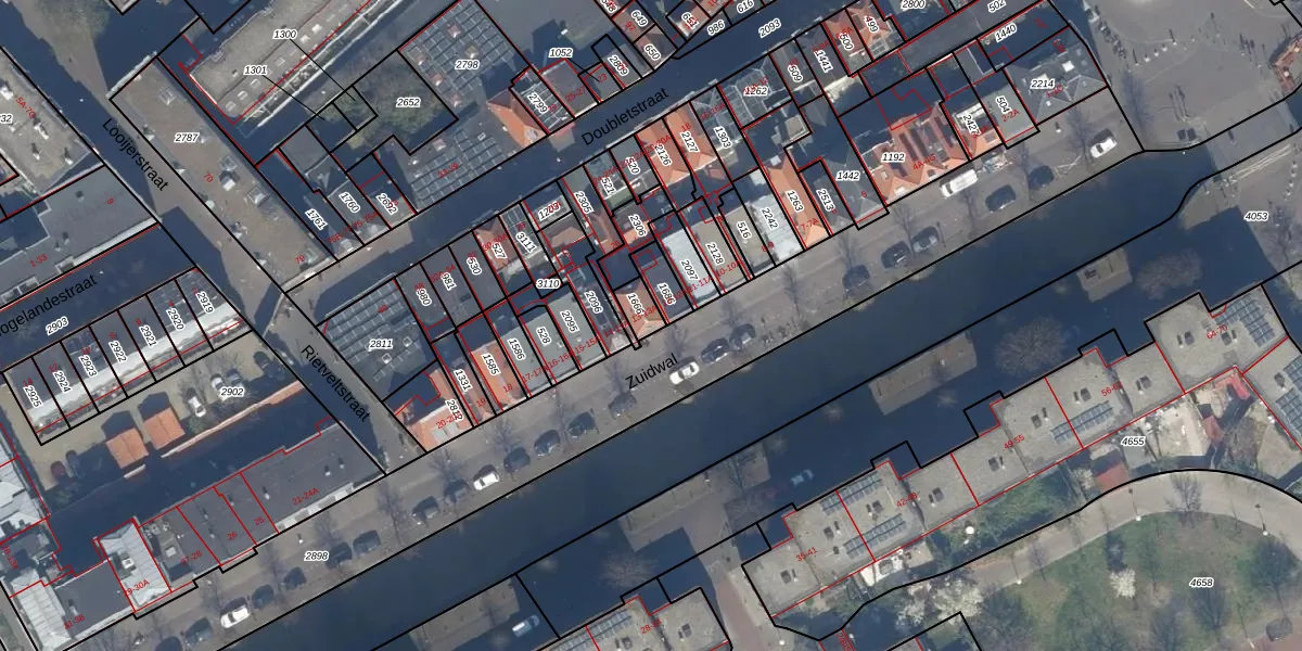Het perceel waarop Zuidwal 13-A staat heeft een oppervlakte van 37 m². Dit is een klein perceel. De perceeloppervlakte wordt geregistreerd door het Kadaster. Gedetailleerde informatie over de maten van dit perceel kunt u vinden in het rapport Kadastrale kaart met maatvoering van Zuidwal 13-A.