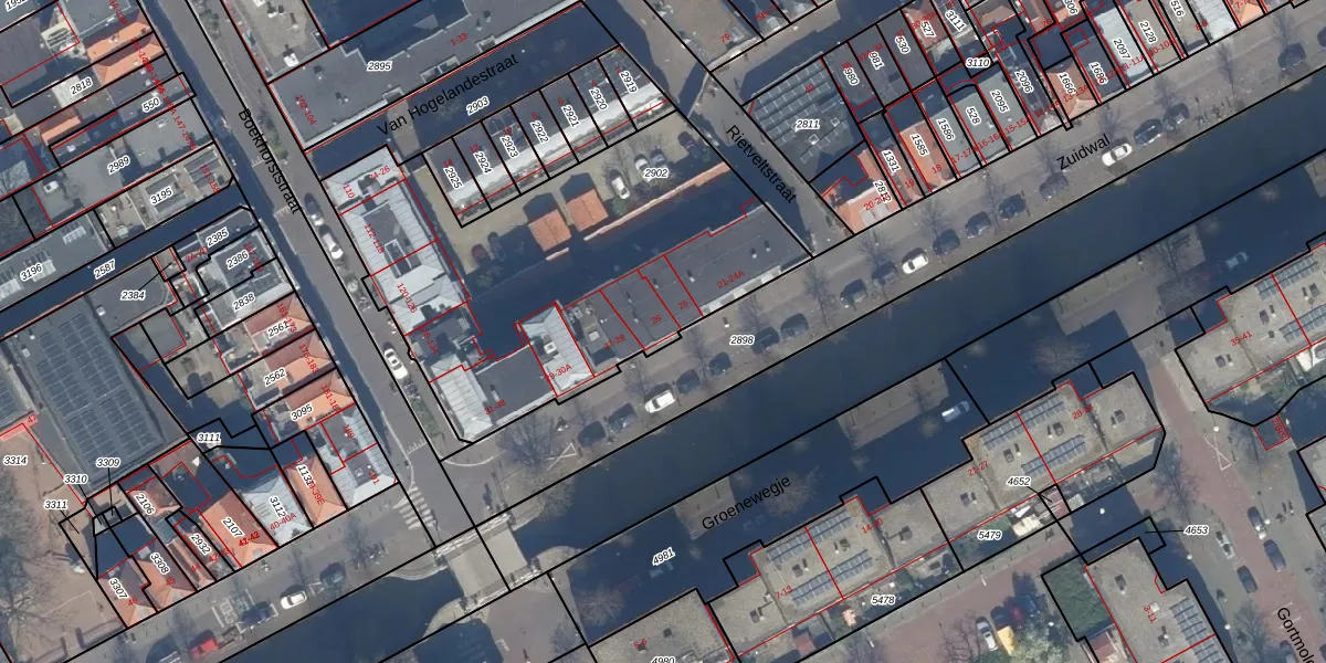 Het perceel waarop Zuidwal 26 staat heeft een oppervlakte van 1925 m². Dit is een zeer groot perceel. De perceeloppervlakte wordt geregistreerd door het Kadaster. Gedetailleerde informatie over de maten van dit perceel kunt u vinden in het rapport Kadastrale kaart met maatvoering van Zuidwal 26.